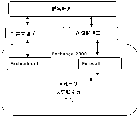 Exres.dll 是 Exchange 专用的资源 DLL。群集服务通过资源监视器与 exres.dll 进行通信,exres.dll 再与相应的 Exchange 组件进行通信。Exres.dll 执行使资源联机或脱机、通过 IsAlive 调用检查资源以及报告故障等操作。