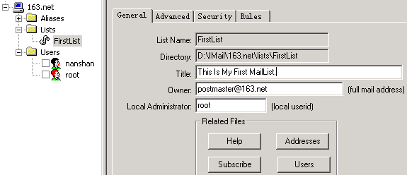 2、本文范例:在邮件主机“163.net”上建立并管理一个名为“FirstList”的邮件列表