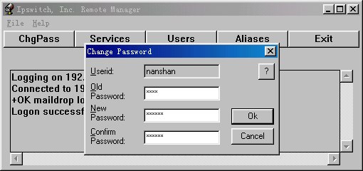 ⑴改变当前用户密码:选工具栏的“ChgPass”(或“File”菜单中的“Change Password”),再根据提示,在“Old”栏输入旧的密码,“New”栏输入新的密码,“Confirm”栏重复新的密码,最后按“OK”退出。