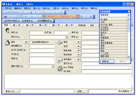默认情况下,Outlook“联系人”对话框中提供了大量的有用信息,如姓名、地址、公司、邮箱、生日等等。但是实际工作中我们所遇到的信息包罗万象,常常会遇到这样的情况:当登记联系人的一条重要信息时找不到相应的选项,怎么办?其实Outlook提供了简单快捷的窗体设计功能,用它就可以解决这样的问题。