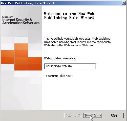 在弹出的欢迎使用新建Web发布规则向导页,输入规则名称后点击下一步;