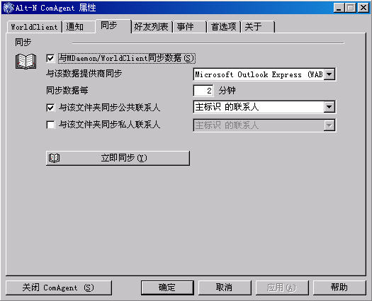 MDaemon提供免费插件ComAgent,可以实现与Outlook、Outlook Express地址簿同步,具体操作: