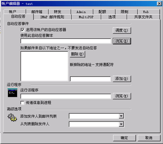 2) 管理员设置:打开MD操作界面-“帐户”-“帐户管理器”-双击需要自动回复的用户,打开该帐户编辑器-“自动应答”
